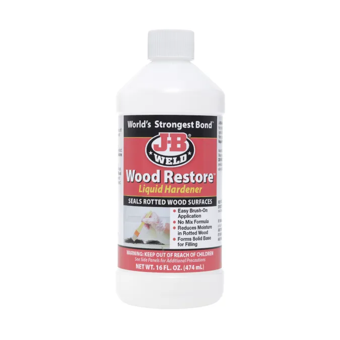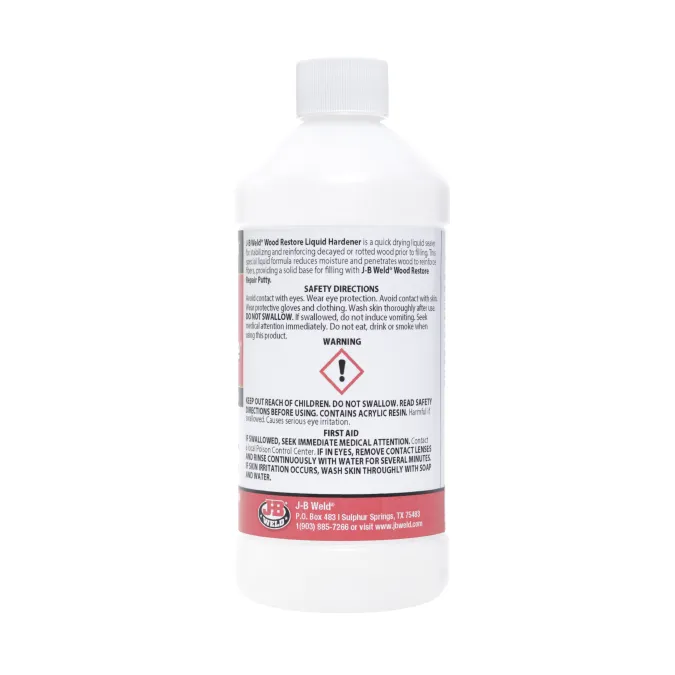 J-B Wood Restore™ Liquid Hardener is a quick drying liquid for sealing and reinforcing decayed or rotted wood; for reducing moisture in decaying or rotted wood surfaces, prior to putty filling. The special liquid formula penetrates the wood to reinforce the fibers stopping further decay and providing a solid base for J-B Wood Restore™ Premium Epoxy Putty.